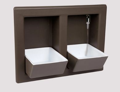Add a water line and hook it up to your Designer Pet Eateries. The water line hook-up is basically the same as a hook-up to a refrigerator. Everything you see in the picture, plus 25 feet of hose, saddle valve, and all necessary fittings are included. The hose would be run through the house framing to reach the nearest accessible cold water line and tap on. Once you are tapped onto the water line, there is an on and off valve at the top of the Eatery as seen in photo. This may require professional installation from a local plumber. Although it requires an professional installer, this is the most simplified and convenient accessory one could possibly acquire.